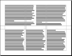 Erstellen einer Seite mit unterschiedlicher Spaltenanzahl Sie können die Anzahl der Spalten in verschiedenen Teilen derselben Seite variieren, z. B. zwei Spalten in der oberen Hälfte der Seite und drei in der unteren Hälfte. Sie können maximal 20 Spalten pro Seite nahezu beliebig kombinieren. ![]() Fertiges Layout mit unterschiedlicher Spaltenanzahl So erstellen Sie unterschiedliche Spalten auf derselben Seite 1 Wählen Sie "Layout" > "Spaltenhilfslinien", geben Sie die Spaltenanzahl für den oberen Teil der Seite ein, und klicken Sie dann auf "OK". 2 Positionieren Sie eine Linealhilfslinie an der Stelle, an der dieses Format enden soll. 3 Positionieren Sie Text innerhalb der ersten Spalte bis nach unten zur Linealhilfslinie. Klicken Sie dann unten auf den Textobjektanfasser. ![]() 4 Positionieren Sie Text innerhalb der zweiten Spalte bis nach unten zur Linealhilfslinie. 5 Wiederholen Sie Schritt 1, aber geben Sie diesmal die Spaltenanzahl für den unteren Teil der Seite ein, und vergewissern Sie sich, daß im Dialogfeld die Option "Layout anpassen" deaktiviert ist. Ziehen Sie dann eine Linealhilfslinie an die Stelle, an der die Spalten beginnen sollen. ![]() 6 Positionieren Sie den übrigen Text innerhalb der neu erstellten Spalten, oder wählen Sie ein anderes Dokument, das positioniert werden soll. Aufbau einer Satzdatei > Nicht-druckende Hilfslinien > Erstellen einer Seite mit unterschiedlicher Spaltenanzahl |