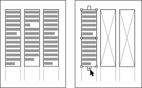 Umleiten des Textflusses in verketteten Textrahmen Die Reihenfolge der verketteten Textrahmen wird durch Klicken auf die Anfasser festgelegt und geändert. Auch neue Textrahmen können auf diese Weise in die Verkettung eingefügt werden. Um die Reihenfolge der Verkettung in der Mitte eines Satzes verketteter Rahmen zu ändern, muß die Verkettung an dem Punkt unterbrochen werden, an dem die Reihenfolge geändert werden soll. Ist Ihr Text z. B. in den Rahmen 1 bis 2, 2 bis 3 sowie 3 bis 4 verkettet, müssen Sie zur Verkettung des Textes im Rahmen 2 mit einem neuen Rahmen auf der Seite die Verkettung von Rahmen 2 und 3 lösen. Die Rahmen 3 und 4 bleiben verkettet, sie werden jedoch leer (da der verkettete Text nun in Rahmen 2 endet). Sie können aber auch mit "Einstellung" > "Rahmen" > "Aus Verkettung entfernen" einen markierten Rahmen vollständig aus dem Textfluß entfernen. PageMaker verkettet automatisch die Rahmen vor und hinter dem gelösten Rahmen. So dirigieren Sie den Textfluß durch Rahmen um 1 Markieren Sie mit der Zeigefunktion den Rahmen, dessen Verkettung Sie ändern möchten. Sie können Schritt 3 überspringen, wenn der gewählte Rahmen nicht mit einem nachfolgenden Rahmen verkettet ist. 2 Drücken Sie Strg+Umschalttaste (Windows) bzw. Befehlstaste+Umschalttaste (Mac OS), und klicken Sie auf den oberen oder unteren Anfasser des markierten Rahmens. Durch Klicken auf den oberen Anfasser wird die Verkettung mit dem vorhergehenden Rahmen unterbrochen, durch Klicken auf den unteren die Verkettung mit dem nächsten Rahmen. Der Text endet im letzten Rahmen vor dem Verkettungsende. ![]() 3 Klicken Sie bei markiertem Rahmen auf den unteren Anfasser des Rahmens. Der Cursor wird als Verkettungssymbol angezeigt. 4 Klicken Sie auf den Rahmen, der in der Verkettung der nächste sein soll. ![]() So trennen Sie einen Rahmen aus einer Verkettung 1 Markieren Sie mit der Zeigefunktion den aus der Verkettung zu löschenden Rahmen. 2 Wählen Sie "Einstellung" > "Rahmen" > "Aus Verkettung entfernen". Textformatierung und -verarbeitung > Verketten von Textrahmen > Umleiten des Textflusses in verketteten Textrahmen |