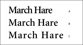 Hinweis: Wenn Sie die Schrift horizontal skalieren, wendet PageMaker die Laufweite auf dieser Einstellung basierend an. Auf Schrift mit einem Schriftgrad von 12 Punkt und einer Buchstabenbreite von 150 % wird z. B. die gleiche Laufweite angewendet wie auf Schrift mit einem Schriftgrad von 18 Punkt.