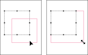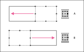 Verschieben und Skalieren von Objekten Jedes nicht festgesetzte Objekt kann durch Ziehen mit der Maus oder mit Hilfe der Kontrollpalette verschoben und skaliert werden. Sie können ein Objekt auch mit den Pfeiltasten verschieben. Obwohl Sie mehrere Objekte gleichzeitig verschieben können, ist das Skalieren mehrerer Objekte nur möglich, wenn Sie sie zuvor in einer Gruppe zusammenfassen. Weitere Informationen zum Skalieren von Textobjekten finden Sie unter Verschieben und Anpassen von Textobjekten. ![]() Verschieben eines Objekts durch Ziehen (links). Skalieren eines Objekts durch Ziehen eines Anfassers (rechts). Beim Ziehen eines Objekts haben Sie zwei Möglichkeiten: Hinweis: Beachten Sie beim Skalieren von 1-Bit Bitmap-Bildern die Auflösung Ihres Zieldruckers. (Siehe Skalieren von 1-Bit Bitmap-Bildern.) So verschieben oder skalieren Sie ein Objekt durch Ziehen 1 Markieren Sie das Objekt. 2 Drücken Sie die Umschalttaste, um eine rein vertikale oder horizontale Bewegung zu erzwingen, die Form eines Objekts bei der Skalierung beizubehalten oder Grafiken proportional zu skalieren. (Siehe Einschränken der Form eines Objekts.) 3 Ziehen Sie das Objekt an eine neue Position, oder skalieren Sie es durch Ziehen eines Anfassers. Der Zeiger ändert sich dabei zum Pfeil (beim Verschieben), Doppelpfeil (beim Skalieren der meisten Objekte) oder Kreuz (beim Skalieren von Linien). Das Ziehen eines Anfassers ändert nur die Breite oder Höhe des Objekts. Beim Ziehen eines Eckanfassers werden Breite und Höhe gleichzeitig geändert. Hinweis: Zum Verschieben einer nicht gefüllten Form müssen Sie den Zeiger auf den Umriß (nicht auf einen Anfasser) setzen. So verschieben Sie ein Objekt mit der Kontrollpalette 1 Markieren Sie das Objekt. 2 Wählen Sie "Fenster" > "Kontrollpalette einblenden". 3 Bestimmen Sie durch Wählen eines Bezugspunkts den Teil der Grafik, der bewegt werden soll. Ist der Bezugspunkt ein Kasten, kann das Objekt verschoben werden. Ist er ein Pfeil, wird die Größe geändert. Zum Umschalten zwischen den Modi klicken Sie auf den Bezugspunkt. 4 Zum Verschieben des Objekts stellen Sie die Werte X und Y ein. So verschieben Sie ein Objekt mit den Pfeiltasten 1 Markieren Sie das Objekt. 2 Verwenden Sie eines der folgenden Verfahren: Sie können die Vorgabeschrittweite und das Einheitensystem ändern. Siehe Festlegen der Einstellungen für Maßeinheiten und Schrittweiten. So skalieren Sie ein Objekt mit der Kontrollpalette 1 Markieren Sie das Objekt. 2 Wählen Sie "Fenster" > "Kontrollpalette einblenden". 3 Wählen Sie per Klick oder Doppelklick den Bezugspunkt im Bezugspunktsymbol. ![]() A. Einfacher Klick auf das Bezugssymbol B. Doppelklick auf das Bezugssymbol 4 Zur Einschränkung des Skalierens können Sie folgende Einstellungen aktivieren: 5 Geben Sie mit einer der folgenden Methoden eine Größe an, und klicken Sie auf die Schaltfläche "Anwenden" ( Grafiken und Textobjekte > Verschieben und Skalieren von Objekten Verwandte Themen: |