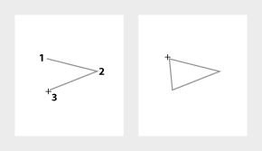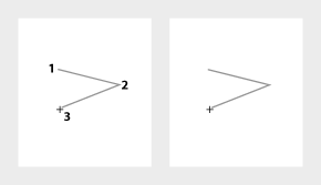 Verankern Sie mit einem Mausklick die Liniensegmente (links), und drücken Sie eine beliebige Taste außer Rücktaste, Entf oder Esc, oder klicken Sie auf den ersten Ankerpunkt (rechts).