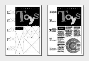 Erstellen eines Rahmens Zum Erstellen eines Rahmens verwenden Sie die Rahmenfunktionen im Funktionenfenster. Weitere Informationen finden Sie unter Zeichnen und Bearbeiten von Linien und Formen. Außerdem können Sie (mit Ausnahme von geraden Linien) jedes mit den Zeichnungsfunktionen erstellte Objekt in einen Rahmen umwandeln. Wenn Sie einer Standardseite einen Rahmen hinzufügen, werden dessen Grenzlinien und sein Inhalt auf jeder Seite der Satzdatei angezeigt, der die Standardseite zugewiesen wurde. Sie können keinen Inhalt aus einer Satzdateiseite in einen auf einer Standardseite positionierten Rahmen einfügen. ![]() Wenn Sie leere Rahmen als Platzhalter zeichnen und Textrahmen verketten (links), können Sie eine Vorlage erstellen, bei der der Inhalt einfach in die vorgesehenen Freiräume eingefügt werden kann (rechts). So wandeln Sie eine Grundform in einen Rahmen um 1 Erstellen oder markieren Sie eine mit PageMaker gezeichnete Form. 2 Wählen Sie "Einstellung" > "Rahmen" > "In Rahmen umwandeln". Füllung, Linienstärke und andere Objektattribute bleiben unverändert.