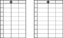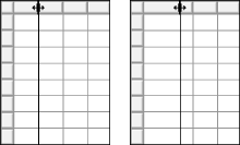 Skalieren von Zeilen und Spalten Adobe Table bietet zahlreiche Optionen zum Skalieren von Zeilen und Spalten. So verschieben Sie die Umrandung von Zeilen oder Spalten 1 Wählen Sie "Ansicht" > "Markierungsschaltflächen ein". 2 Um die Größe der angrenzenden Zeile oder Spalte zu erhalten, ziehen Sie die betreffende Umrandung. Drücken Sie andernfalls beim Verschieben der Umrandung die Umschalttaste. ![]() Die angrenzende Spalte ändert ihre Größe beim Ziehen nicht. ![]() Die angrenzende Spalte ändert ihre Größe, wenn Sie beim Ziehen die Umschalttaste drücken. So skalieren Sie Zeilen und Spalten durch Eingeben von Werten 1 Markieren Sie die zu skalierenden Zeilen oder Spalten. 2 Wählen Sie "Zelle" > "Größe von Zeile/Spalte" oder "Fenster" > "Tabellenpalette ein". 3 Geben Sie die neue Zeilenhöhe oder Spaltenbreite ein. 4 Durch Klicken auf "OK" im Dialogfeld "Größe von Zeile/Spalte" oder Drücken der Eingabetaste (Windows und Mac OS) in der Tabellenpalette werden die Änderungen wirksam. So skalieren Sie Zeilen und Spalten durch Ändern der Tabellenhöhe oder -breite 1 Wählen Sie "Format" > "Zellenformatierung". 2 Geben Sie die neue Höhe oder Breite ein. 3 Klicken Sie auf "Anwenden", um die Änderungen zu betrachten, ohne das Dialogfeld zu schließen, oder auf "OK", um die Änderungen durchzuführen und zur Tabelle zurückzukehren. So stellen Sie die Vorgabemaßeinheit für Zeilen- und Spaltengröße (ohne geöffnete Tabelle) ein 1 Wählen Sie "Zelle" > "Größe von Zeile/Spalte (Einstellungen)". 2 Wählen Sie die gewünschte Maßeinheit, und klicken Sie auf "OK". Adobe Table > Formatieren von Text in Tabellen > Skalieren von Zeilen und Spalten |